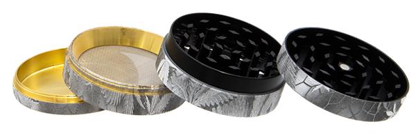 1 CNC Aluminium Grinder Pollinator 4-part ø 52mm 34mm hoch "FULL PRINT LEAF DESIGN"