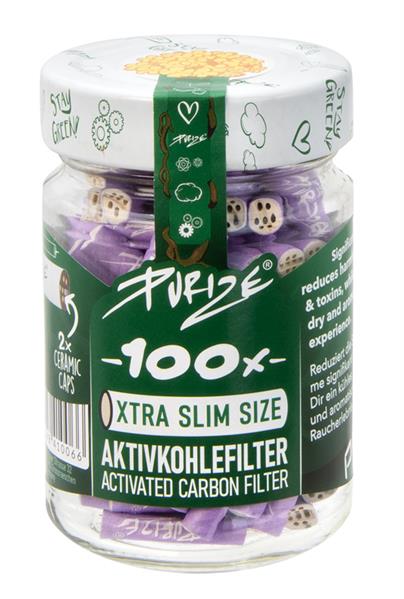 1 Glas PURIZE® XTRA Slim Size LILA Aktivkohlefilter, 100er Glas,