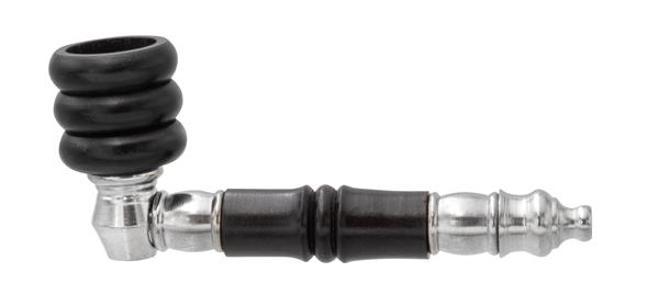 schraubbare Metallpfeife mit Holzkopf und Sieb, mit Holz ummantelter Holm,
