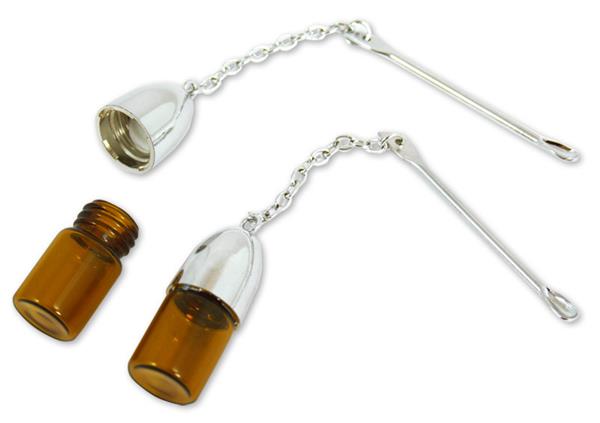 bernsteinfarbener Glasbehälter mit silbernem Schraubdeckel