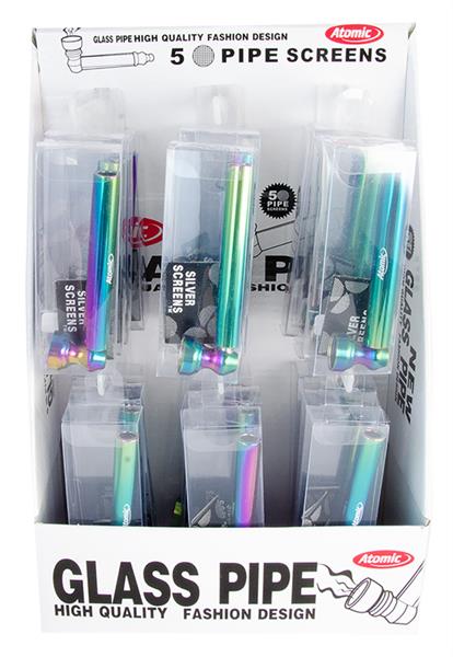 1 US-Schraubpfeife aus Metall/Glas, 95mm, "RAINBOW", sortiert