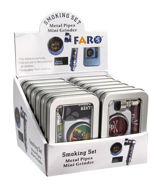 1Raucherset Metallpfeife + Metallgrinder "Skulls",