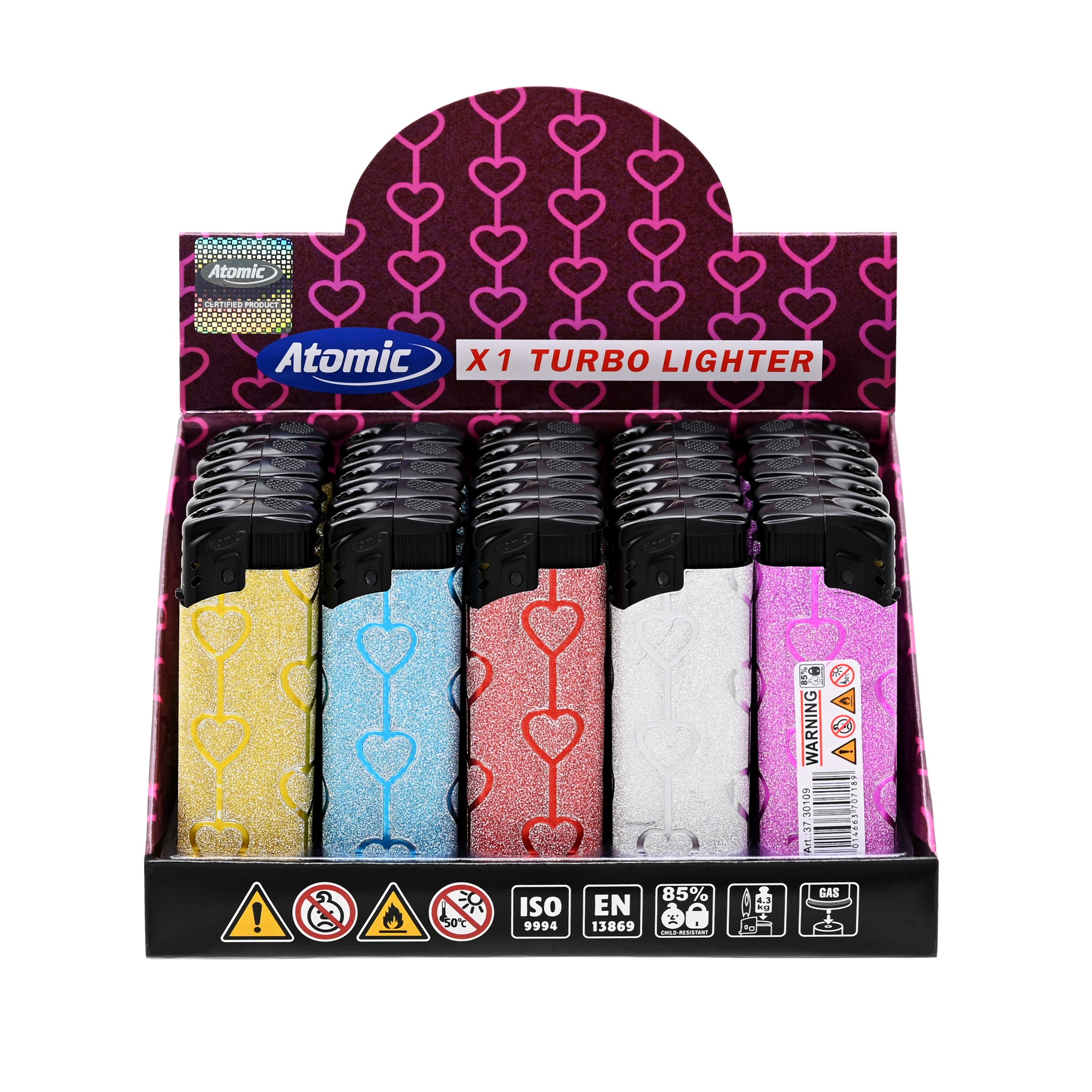 Atomic Elektronik Feuerzeug X1 Turbo Turboflamme Nachfüllbar Jet Sparkling Label Heart