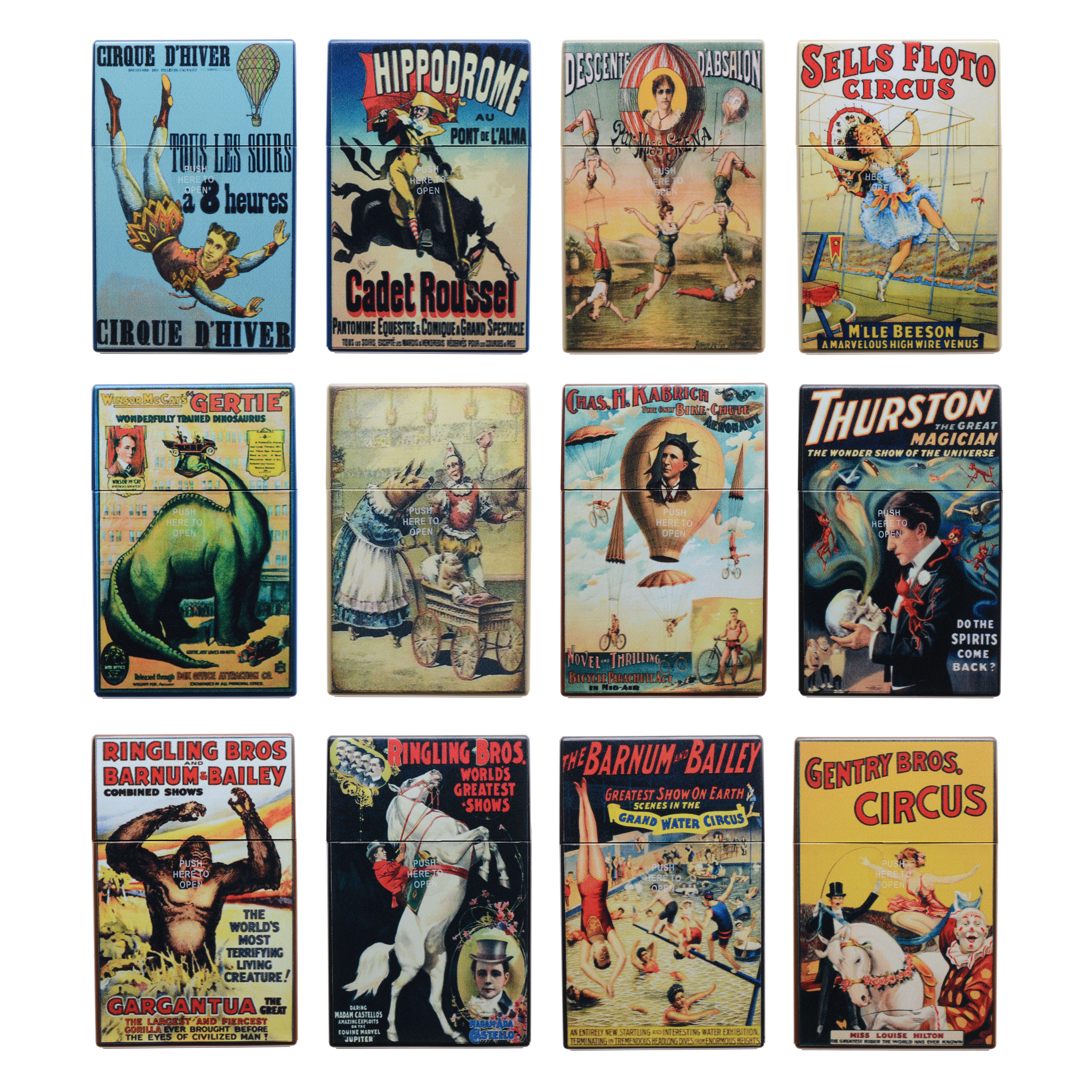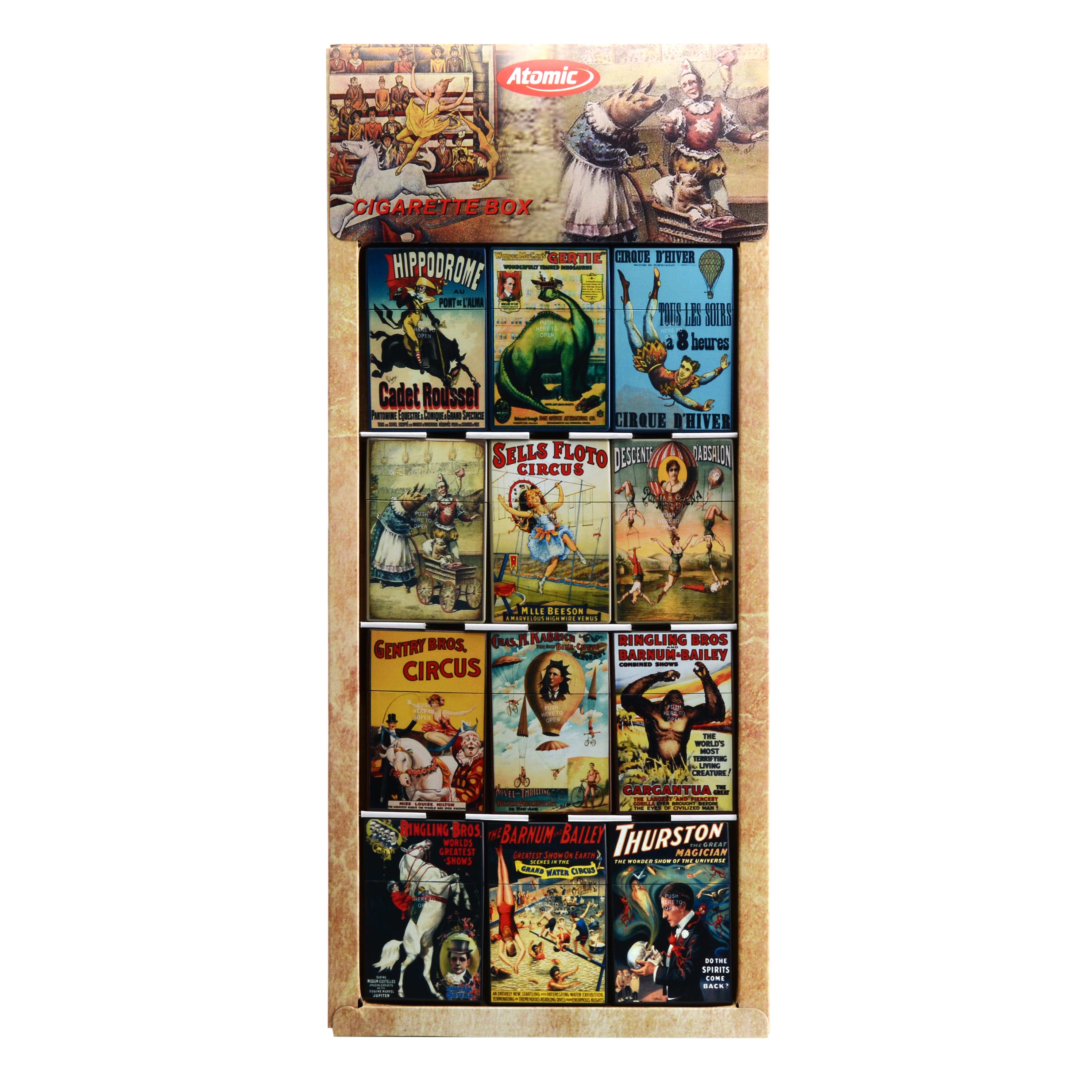 Atomic Zigaretten Box "Circus" für 20 Zigaretten Sprung Deckel Zigarettenbox aus Kunststoff