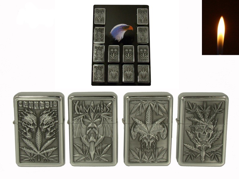 Benzinfeuerzeuge 12er Display Hanf 5,5cm Sturmfeuerzeug Feuerzeug