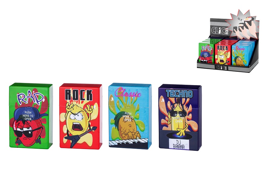 Clic Boxx Zigarettenbox 20er Vollfarbig 4 Motive Zigarettenetui Music Fruits
