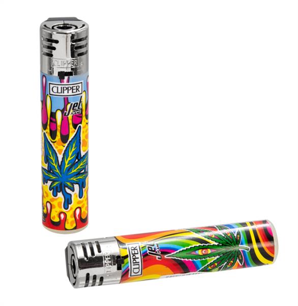 Clipper Plastic JETFLAME Feuerzeuge groß, 48er Display, MAZED LEAVES - Black Cap