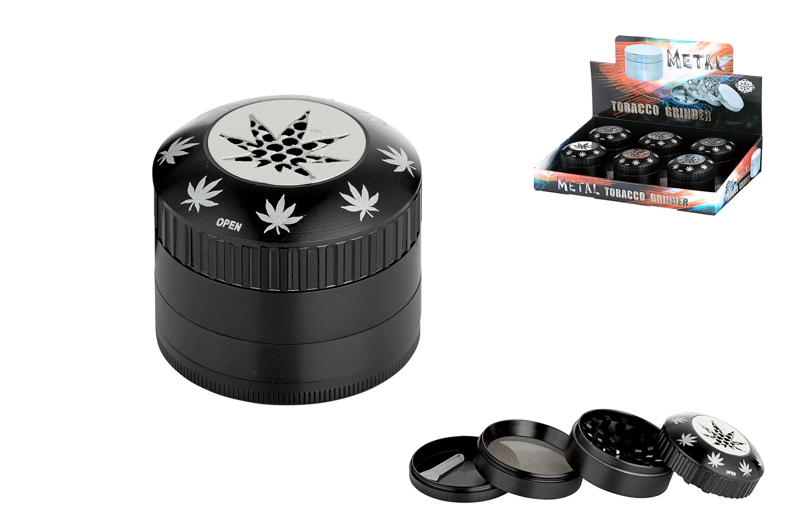 CNC Aluminium Grinder Pollinator 4-part ø 48mm 42mm hoch Metall schwarz Hanfblatt