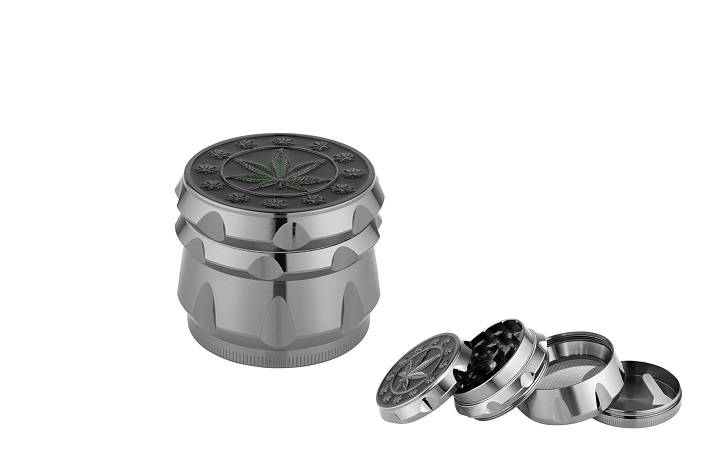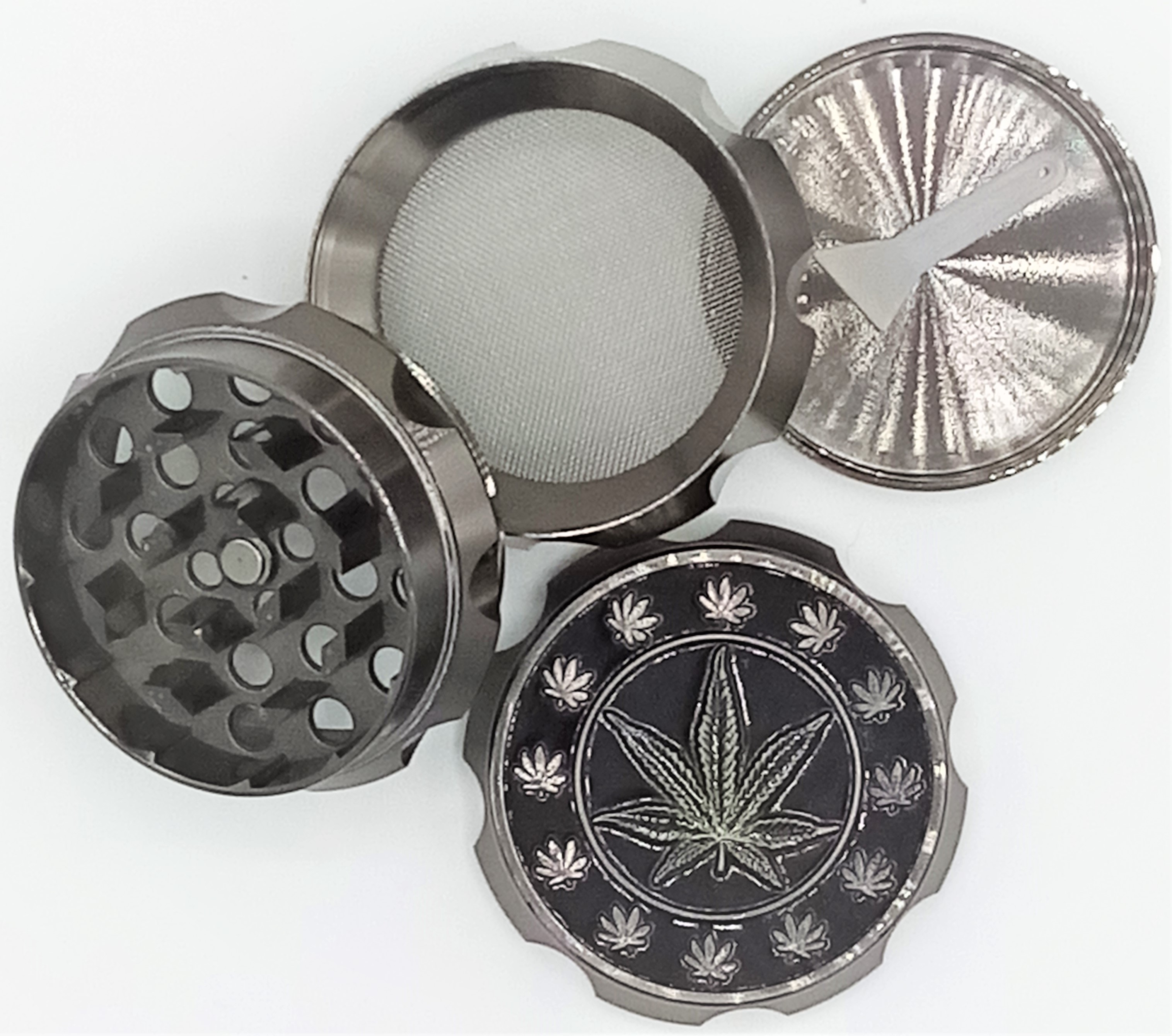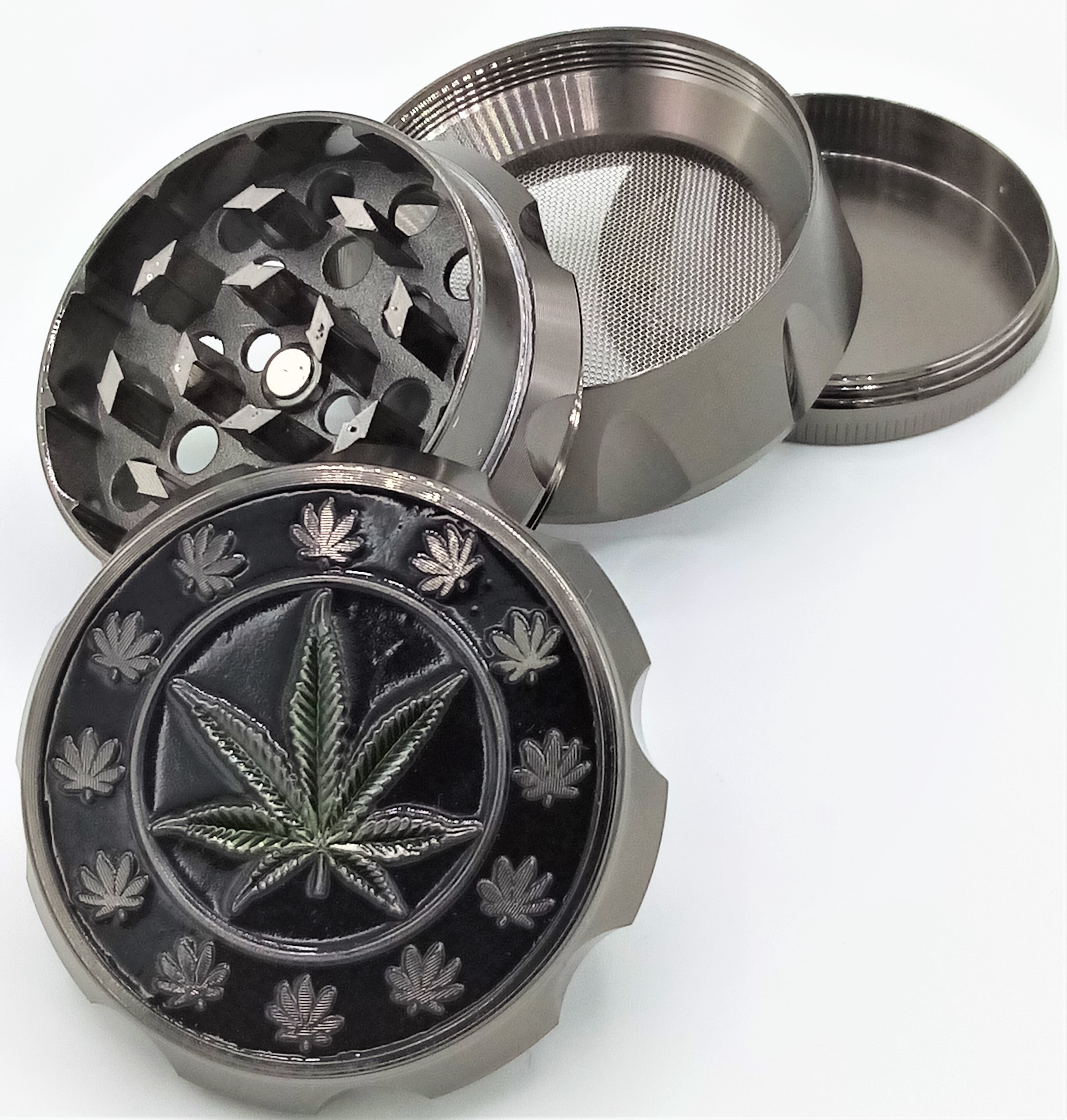CNC Pollinator/Aluminium Mühle/Grinder ø 48mm Hanfblatt anthrazit ,