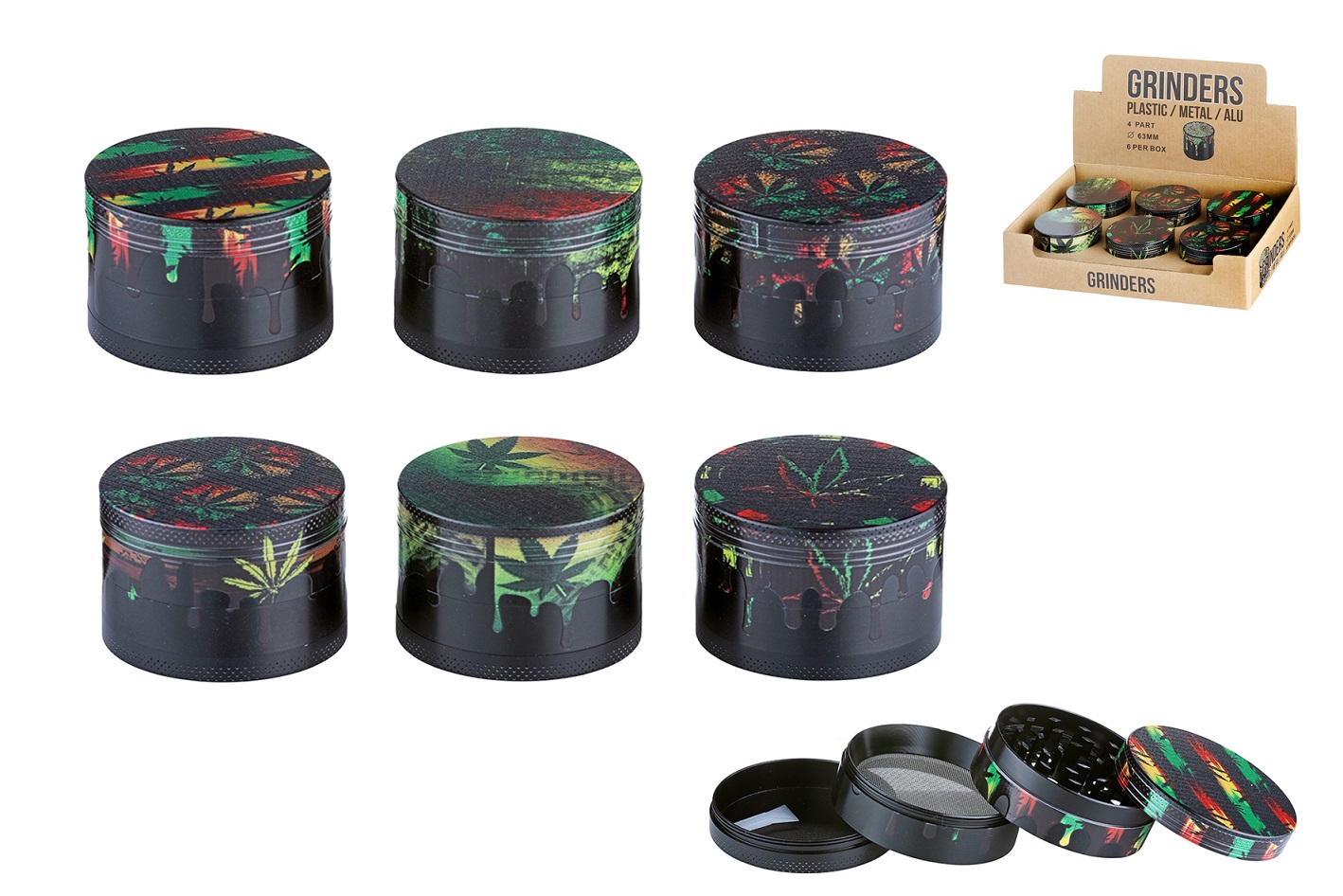 CNC Aluminium Grinder Pollinator 4-part ø 63mm 40mm hoch Hanfblatt schwarz/bunt