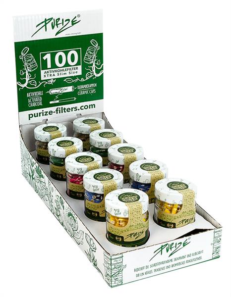 Display PURIZE Aktivkohlefilter XTRA Slim ø 5,9mm 10x 100er Glas