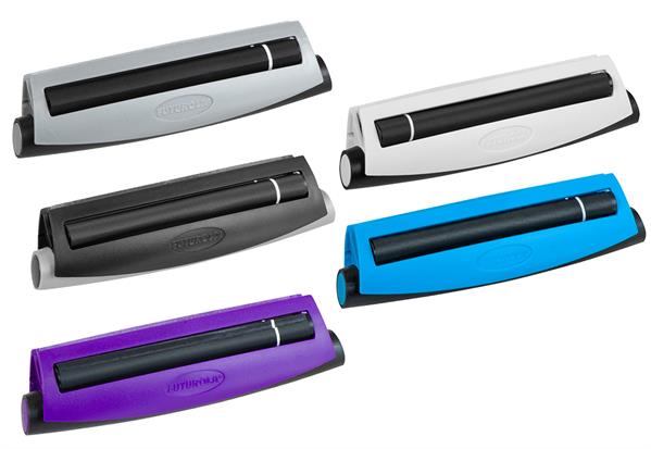 lange, mechanische Drehmaschine zum Drehen von konischen Zigaretten, mit beweglicher Mattenauflage und Klappmechanismus.