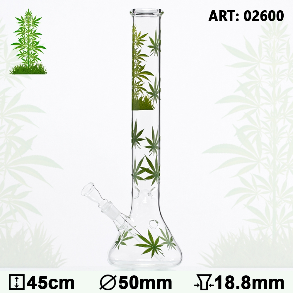 Farbe: klar transparent mit grünen Hanfblättern bedruckt