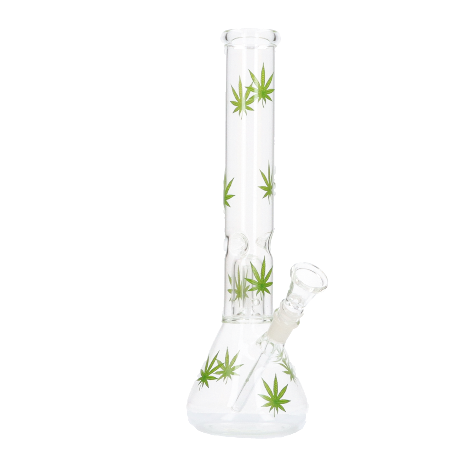 Glasbong Ice+Percolator konisch transparent/Hanfblatt grün 30,5cm