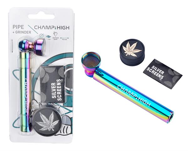 Metall/Glaspfeife "Rainbow" + Metallgrinder Set