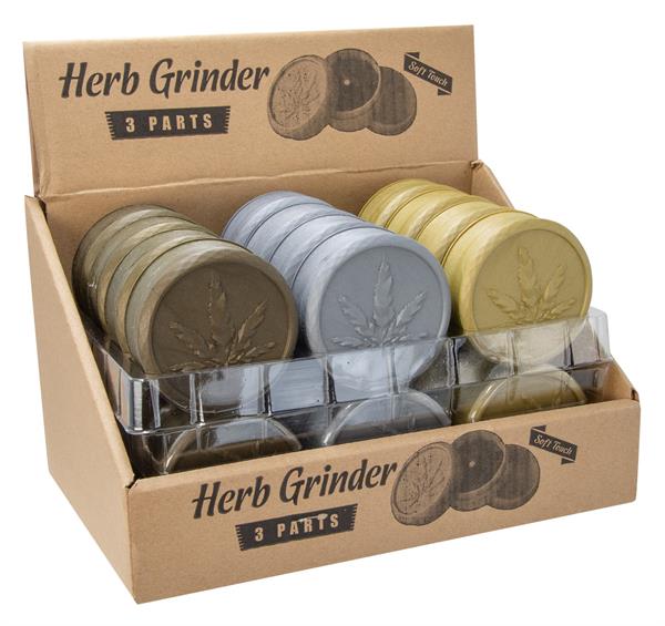 Plastikmühle Kunststoffgrinder Soft Touch mit Pyramidenspitzen, ca. ø 70mm, "Leaf" metallic