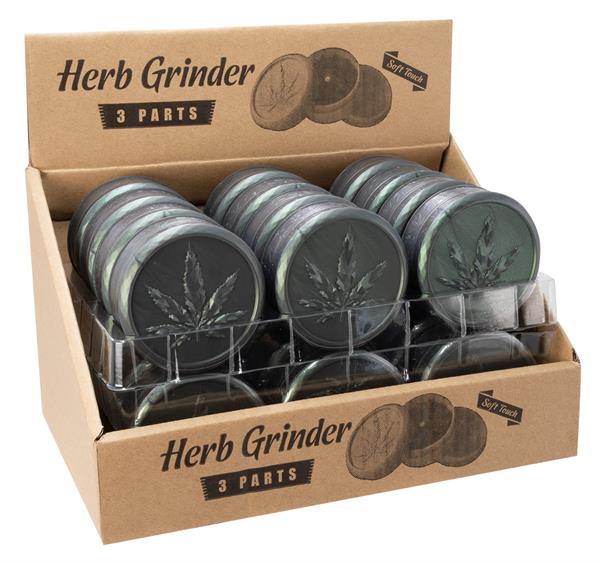 Plastikmühle Kunststoffgrinder Soft Touch mit Pyramidenspitzen, ca. ø 70mm, "Leaf" dunkelgrün metallic