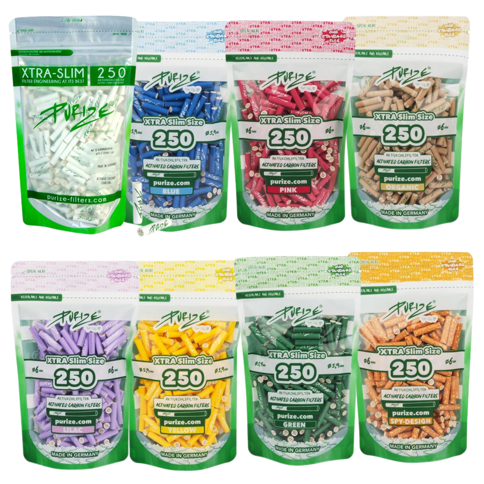 PURIZE Aktivkohlefilter XTRA Slim ø 5,9mm 250er Packung bunt gemischt