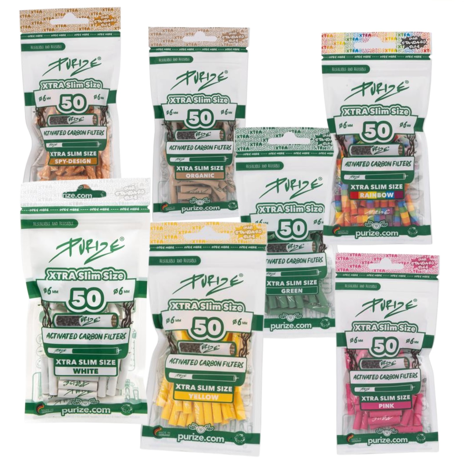 PURIZE® XTRA Slim Size Aktivkohlefilter bunt gemischt