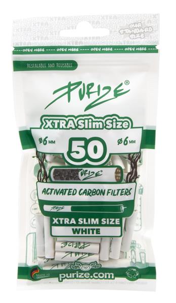 PURIZE Aktivkohlefilter XTRA Slim ø 5,9mm 50er Packung Weiß